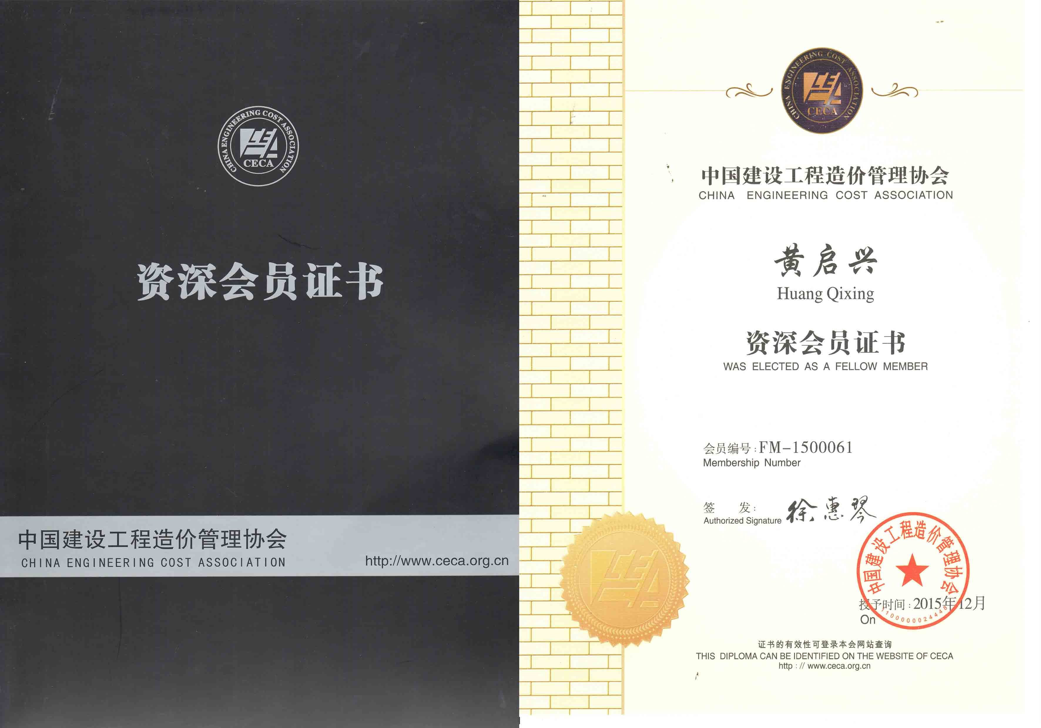 根据中国建设工程造价管理协会《个人会员管理办法(试行)》、《关于申报首批资深会员的通知》等有关文件的规定,2015年中国建设工程造价管理协会开展了首批资深会员的认定工作。经审核,安静等236人符合中价协资深会员的认定条件,其中福建省有2人,我公司董事长兼总经理黄启兴获得“资深会员”称号!在此,表示热烈祝贺!